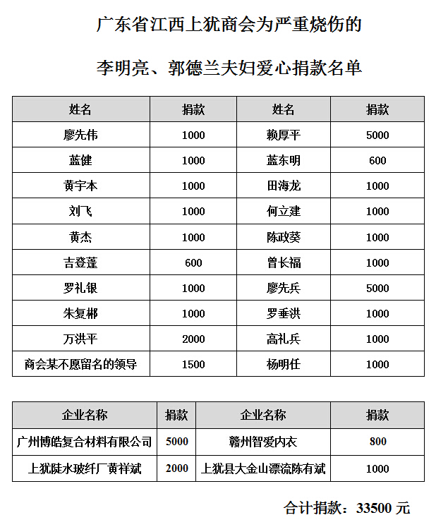 廣東博皓復(fù)合材料有限公司得知消息后,特批從公司愛心基金里捐出5000元,董事長賴厚平個人捐出5000元。